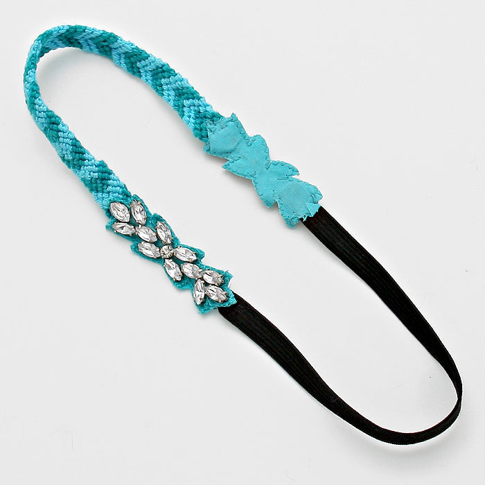 Crystal Petal Accented Chevron Thread Stretch Headband