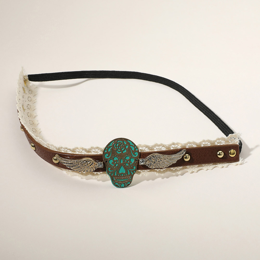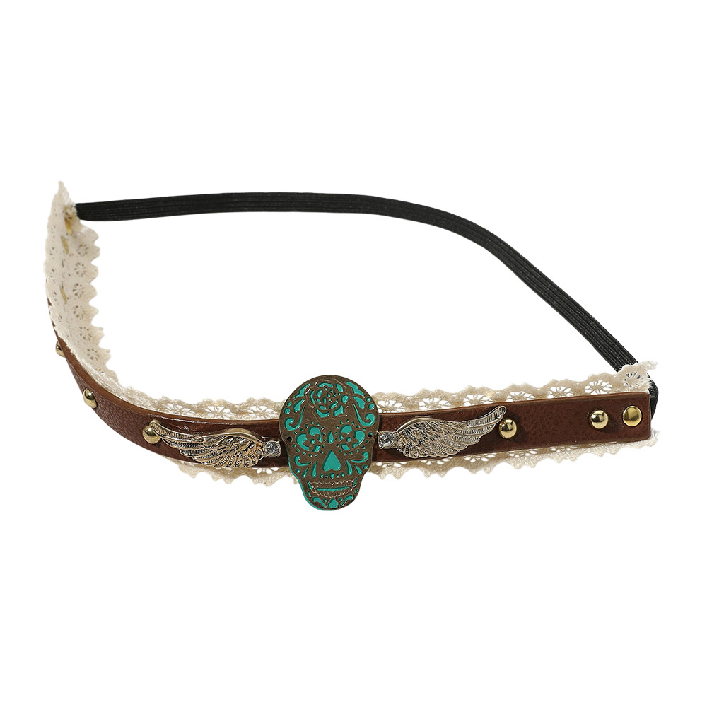 Day of the Dead Mexican Sugar Skull & Wings Faux Leather Lace Stretch Headband