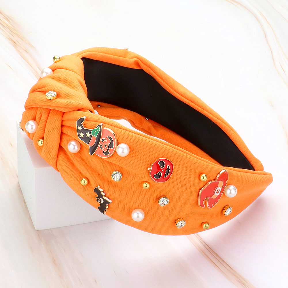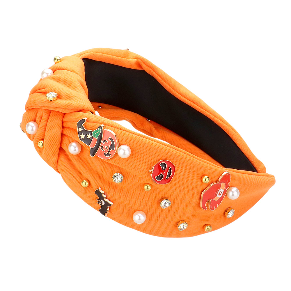 Enamel Halloween Charm Stone Cluster Embellished Knot Headband