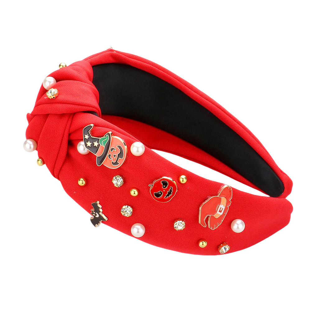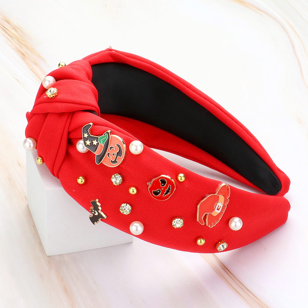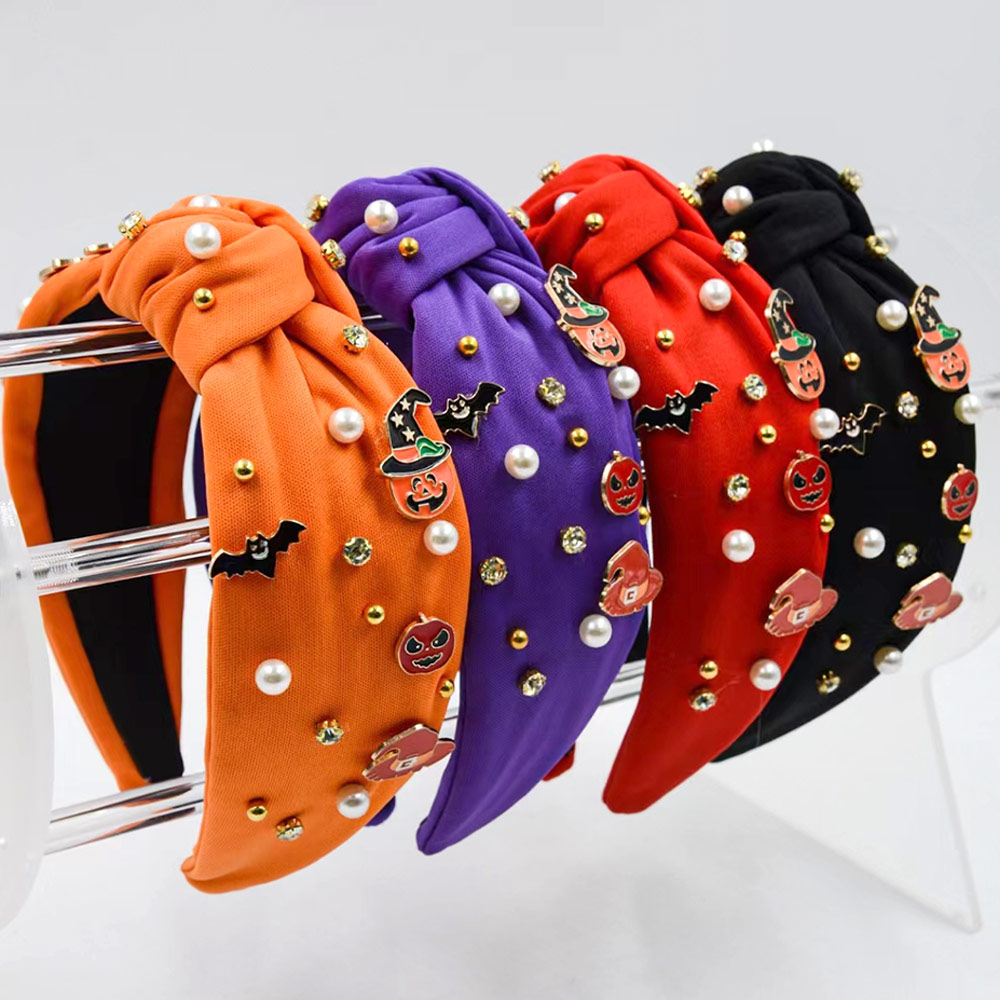Enamel Halloween Charm Stone Cluster Embellished Knot Headband