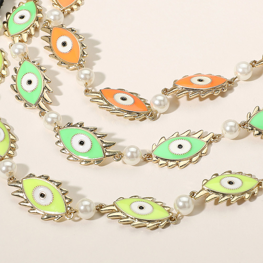 6PCS - Tassel Pointed Faceted Beaded Pearl Stretch Evil Eye Pointed Beaded Cinch Pull Tie Multi Layered Bracelets