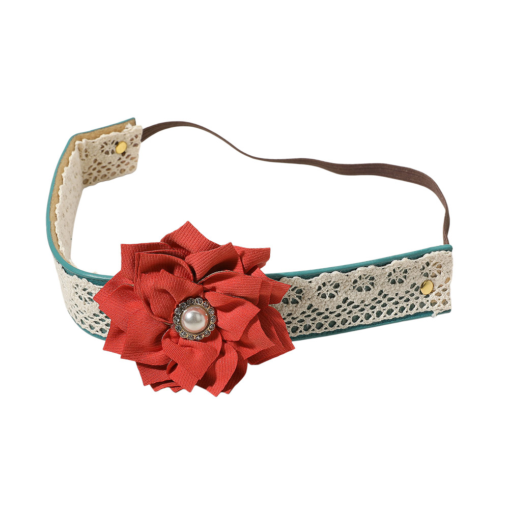 Fabric Flower Accented Lace Stretch Headband