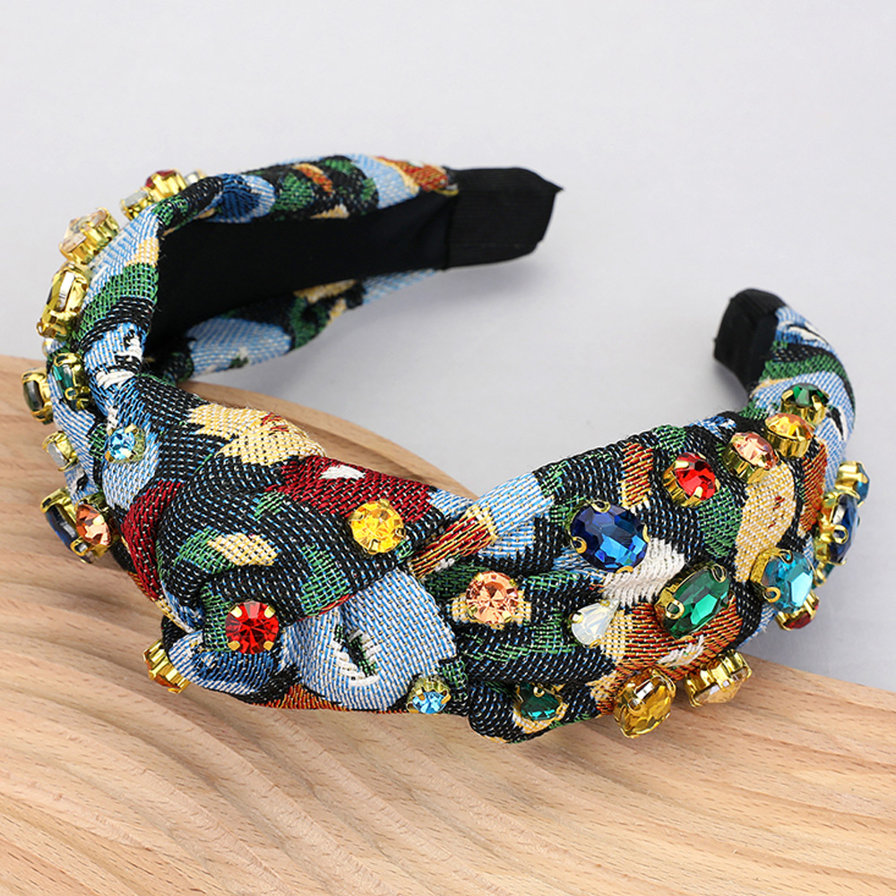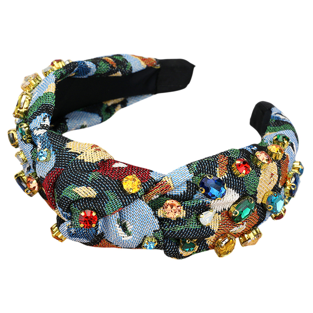 Floral Patterned Stone Cluster Embellished Knot Headband