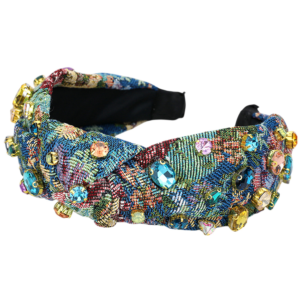Floral Patterned Stone Cluster Embellished Knot Headband Floral Patterned Stone Cluster Embellished Knot Headband Floral Patterned Stone Cluster Embellished Knot Headband