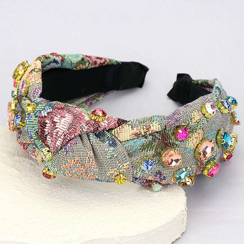 Floral Patterned Stone Cluster Embellished Knot Headband