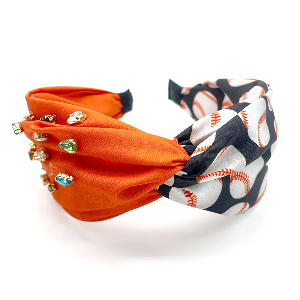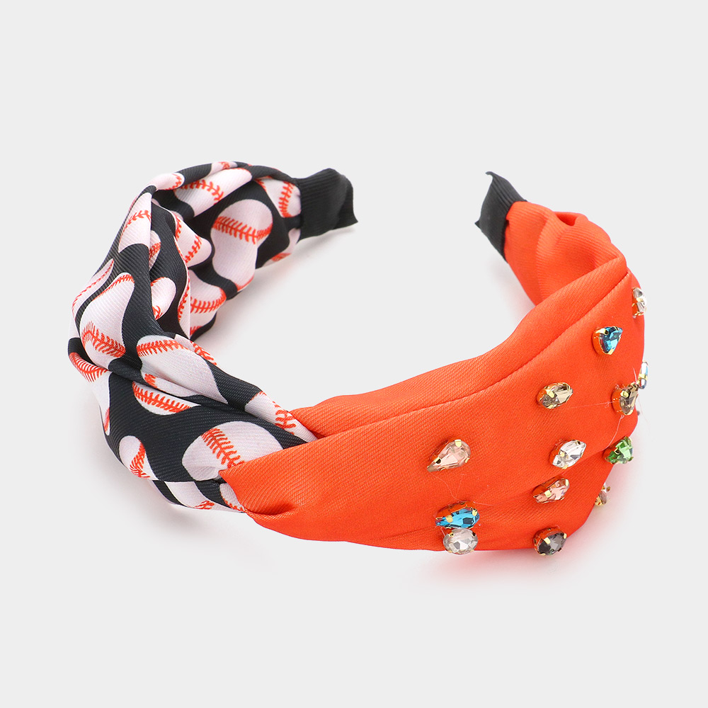 Game Day Multi Stone Embellished Baseball Patterned Twisted Headband