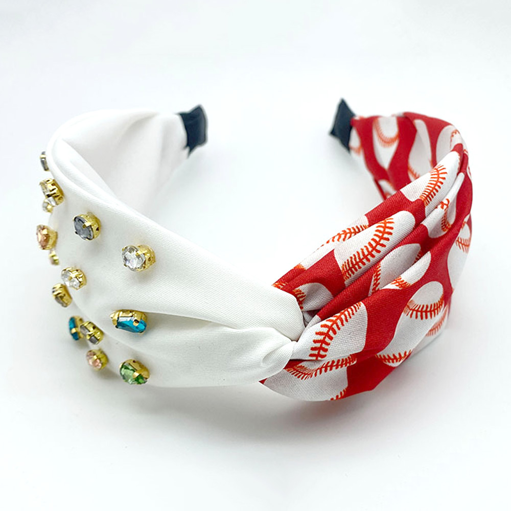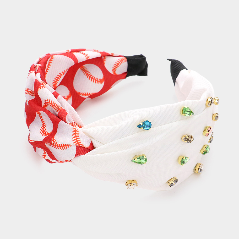 Game Day Multi Stone Embellished Baseball Patterned Twisted Headband