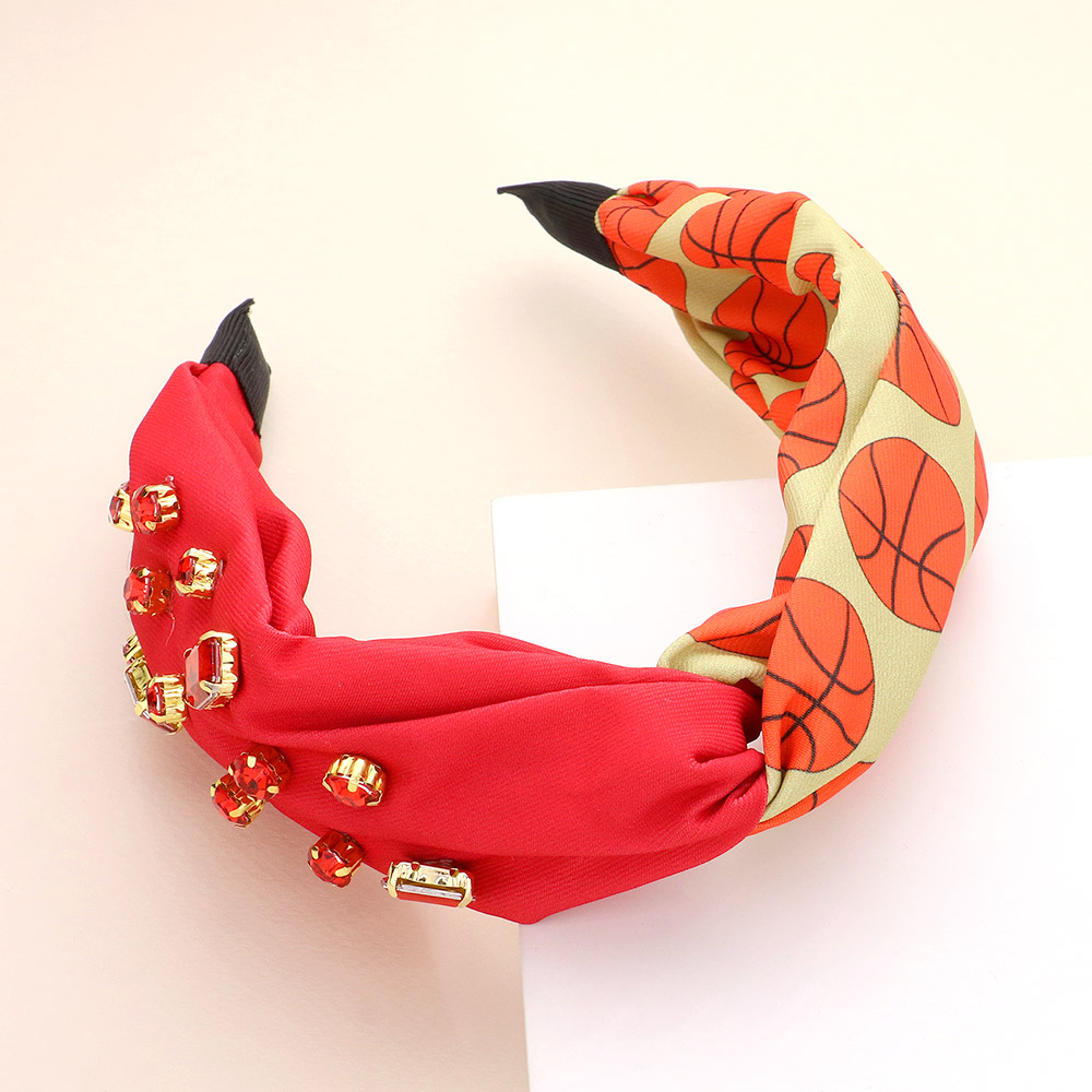 Game Day Multi Stone Embellished Basketball Patterned Twisted Headband