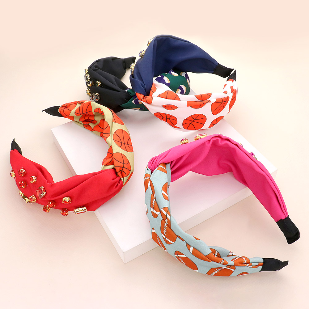 Game Day Multi Stone Embellished Basketball Patterned Twisted Headband
