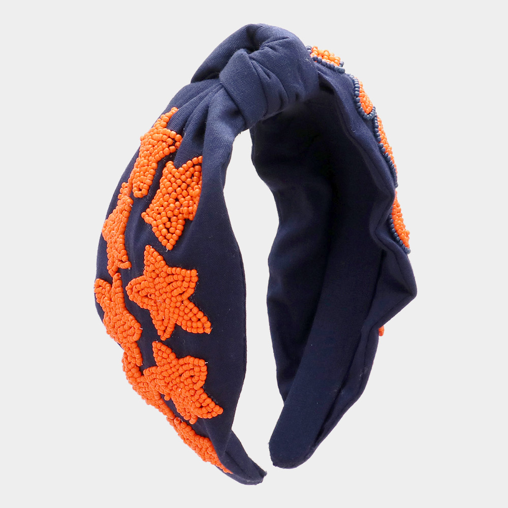 Game Day Seed Beaded ACE Message Star Knot Burnout Headband