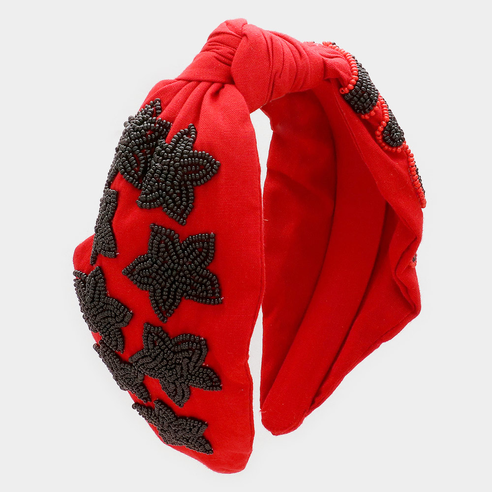 Game Day Seed Beaded ACE Message Star Knot Burnout Headband
