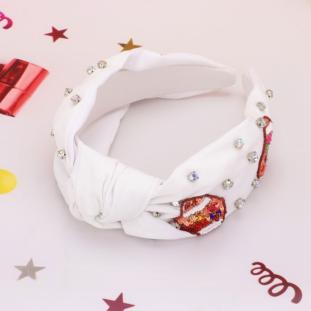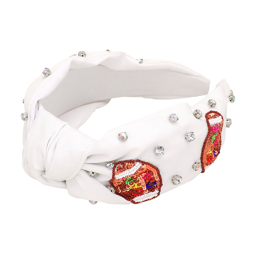 Gameday Football Sequin Seed Beaded Stone Cluster Embellished Knot Headband
