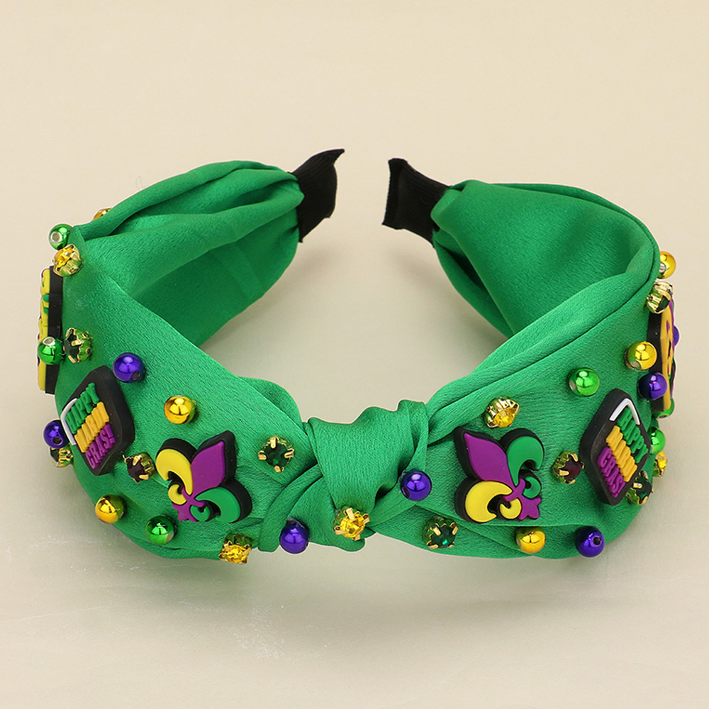 Mardi Gras Charm Stone Cluster Embellished Knot Headband