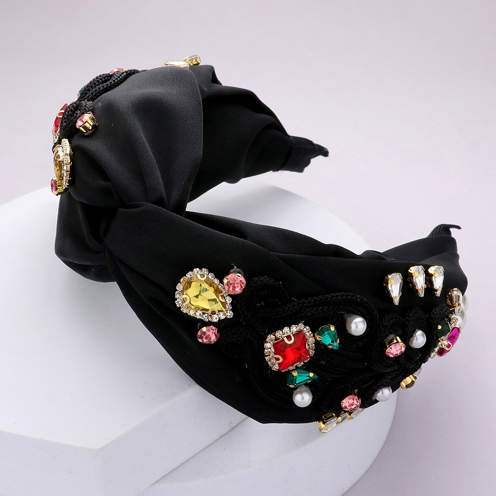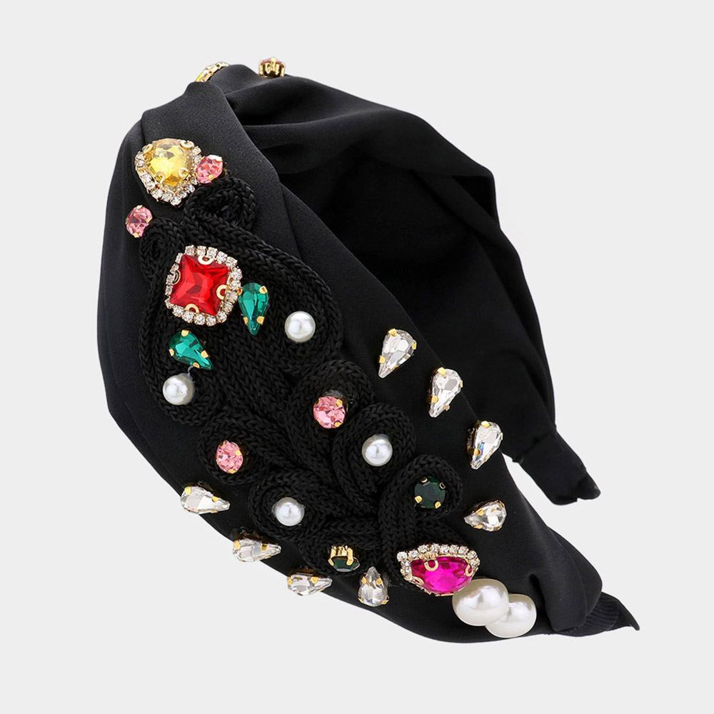 Pearl Multi Stone Embellished Twisted Headband
