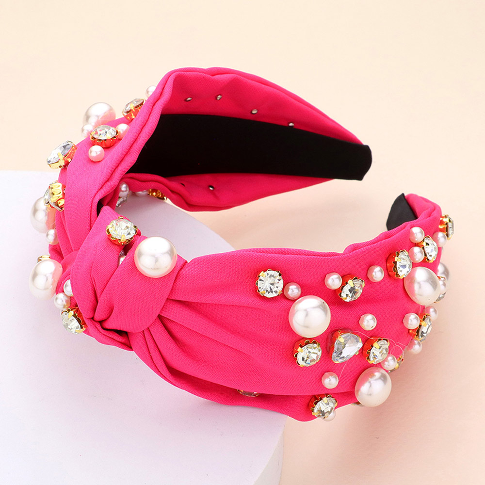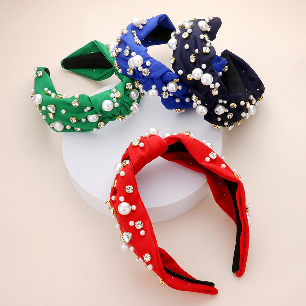 Pearl Stone Cluster Snowflake Embellished Knot Sparkle Fabric Headband