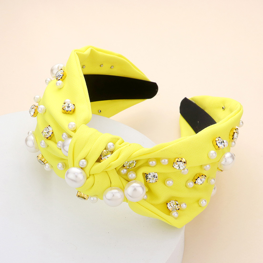 Tennis Ball Seed Beaded Pearl Metal Ball Stone Cluster Embellished Knot Headband