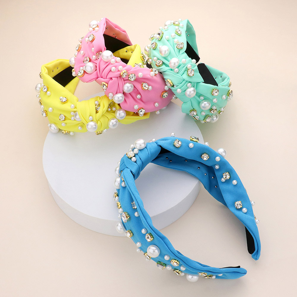 Pearl Multi Bead Embellished Knot Burnout Headband