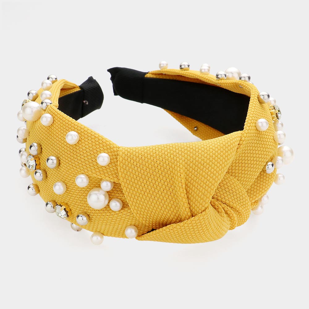 Pearl Round Stone Embellished Knot Burnout Headband