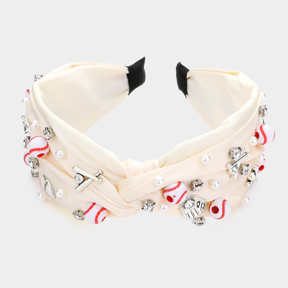 Pearl Stone Baseball Bet Embellished Twisted Headband
