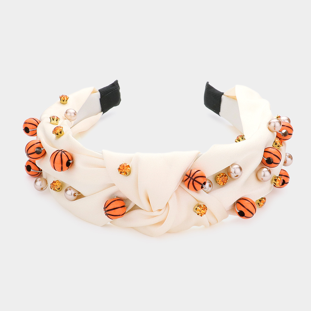 Pearl Stone Basketball Embellished Knot Burnout Headband