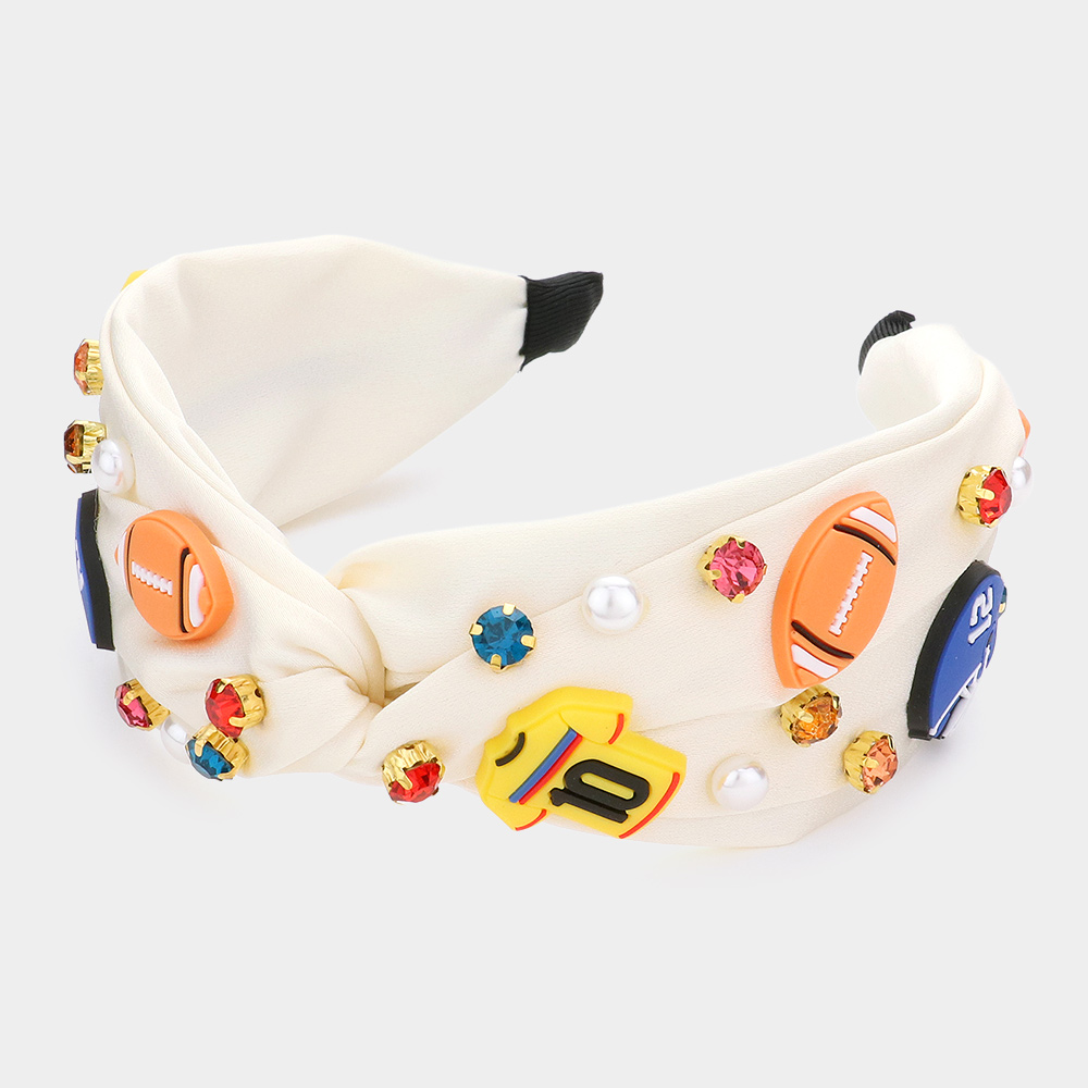 Pearl Stone Soccer Shoe Embellished Twisted Headband