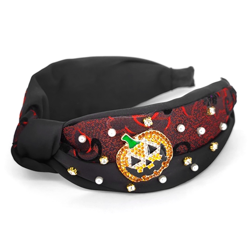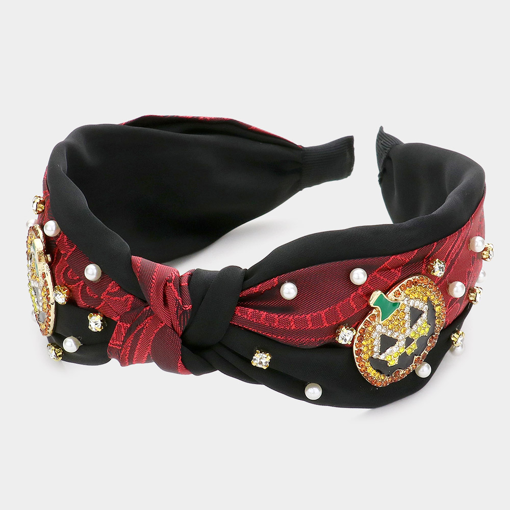 Pumpkin Accented Pearl Stone Embellished Knot Burnout Headband