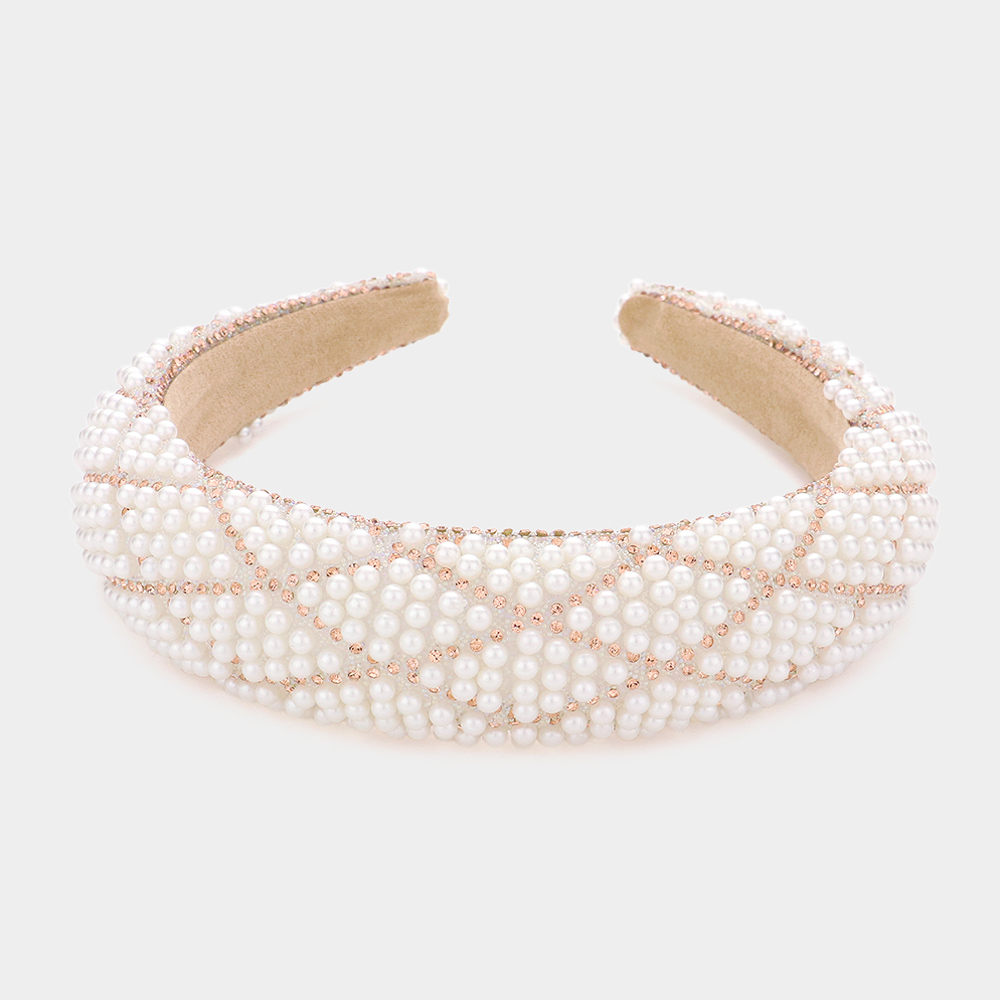 Rhinestone Pointed Pearl Cluster Padded Headband