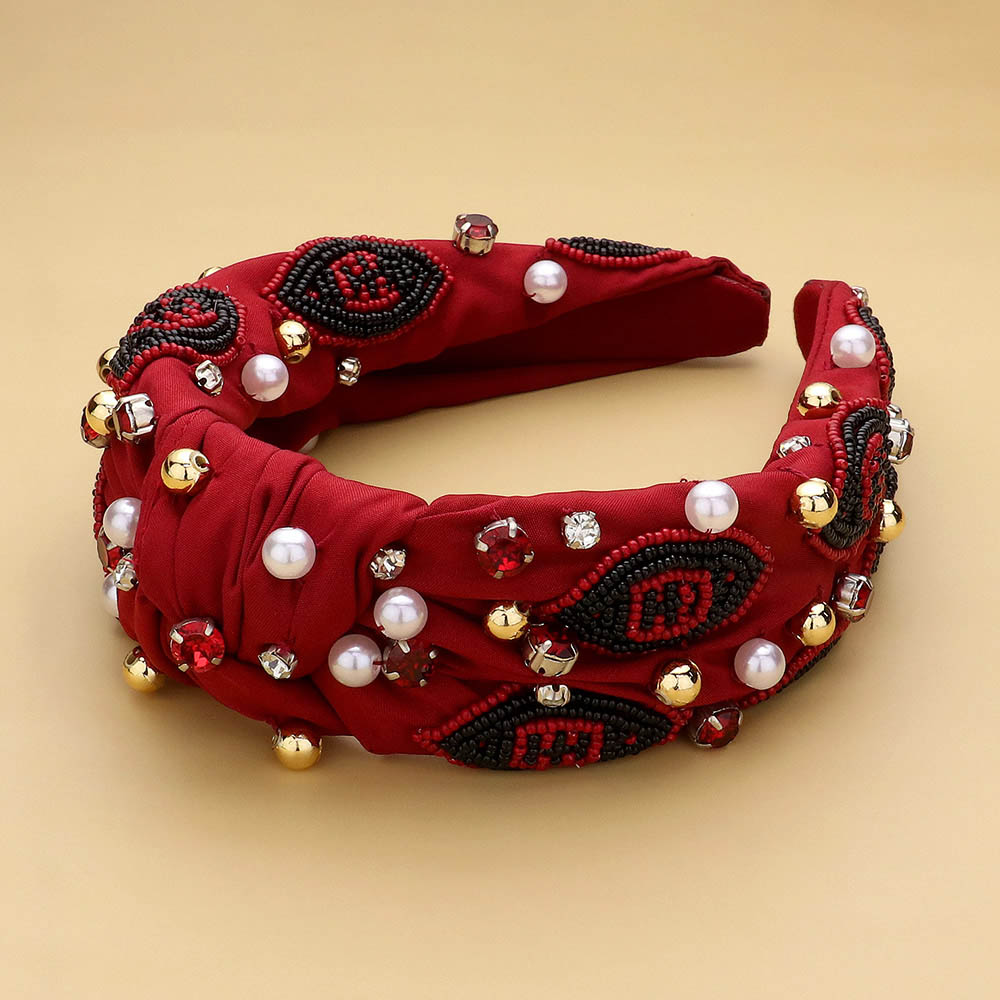 Seed Beaded Football Pearl Stone Cluster Embellished Knot Headband