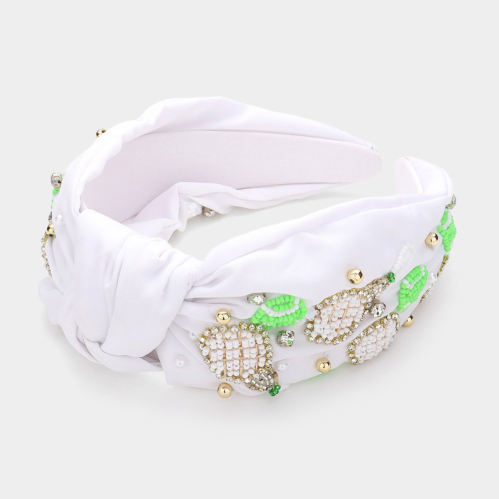 Seed Beaded Tennis Racket Pearl Stone Cluster Embellished Knot Headband