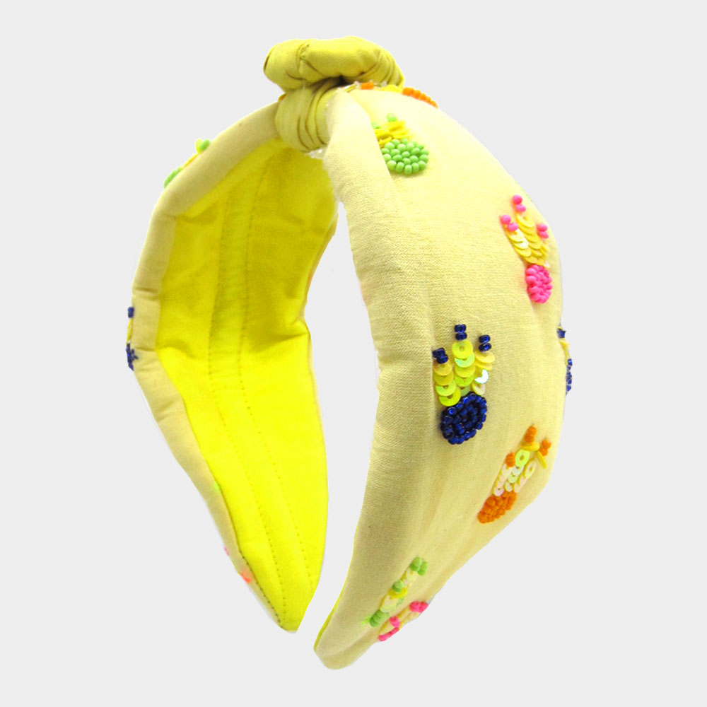Seed Beaded Football Pearl Stone Cluster Embellished Knot Headband