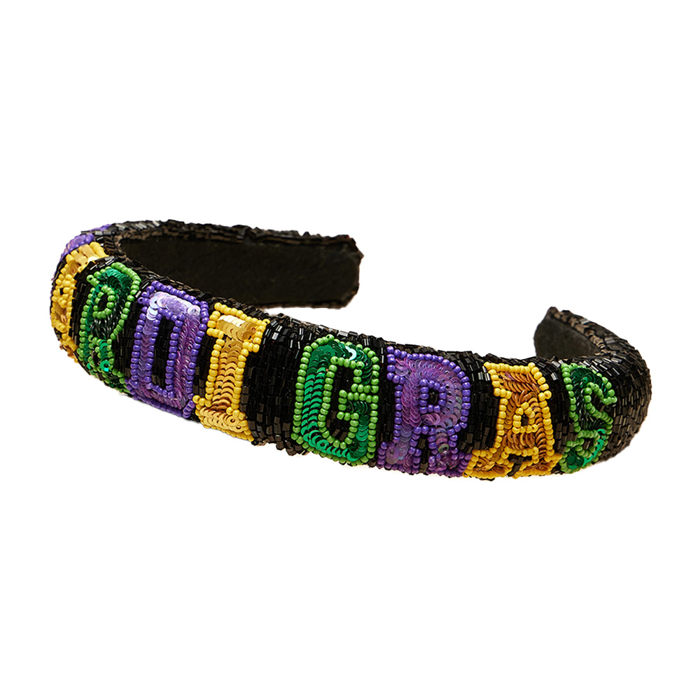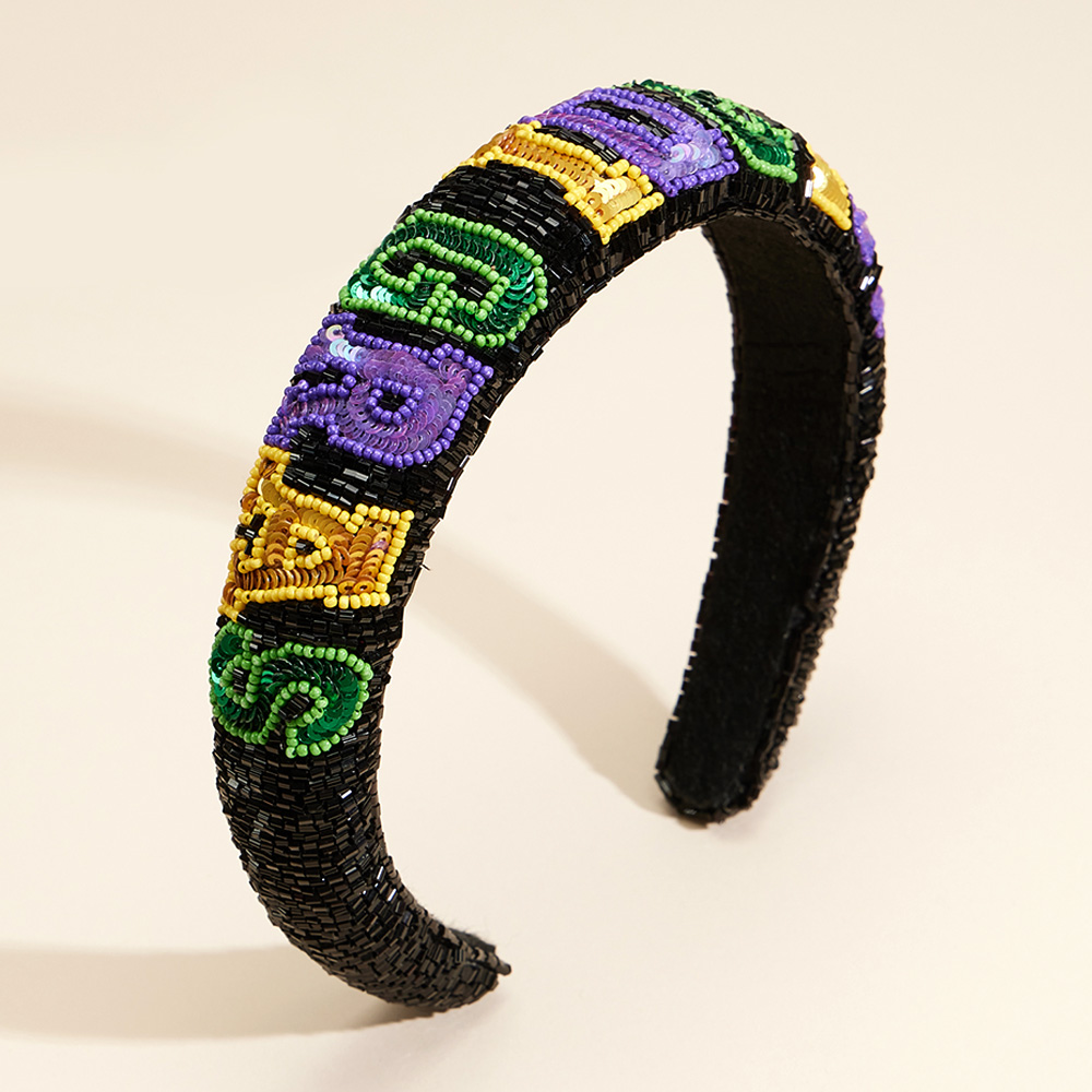 Sequin Mardi Gras Message Seed Beaded Headband