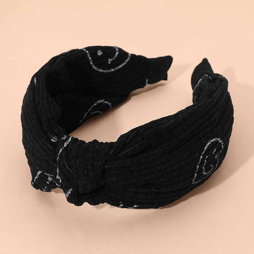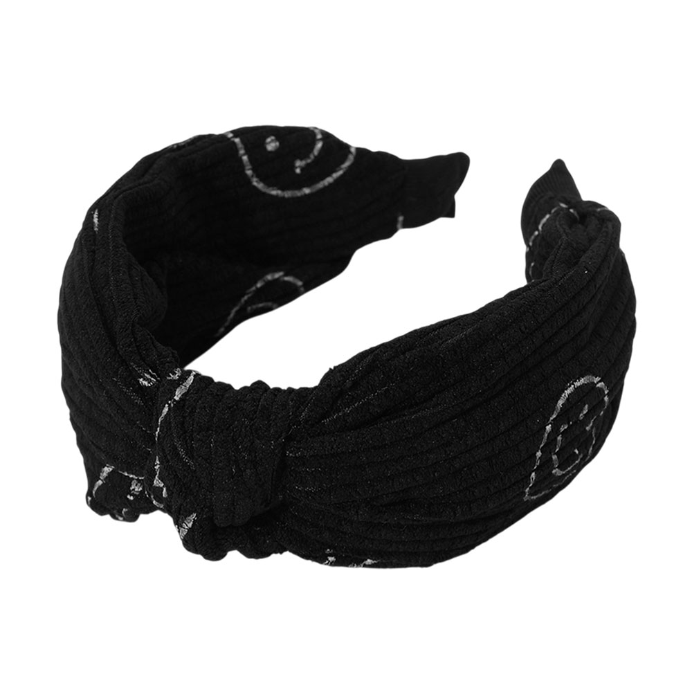 • Cute knotted headband with an all-over smiley face design. Adds playful personality to casual outfits while keeping hair in place. Ideal for everyday wear, gifting, or fun-themed occasions.