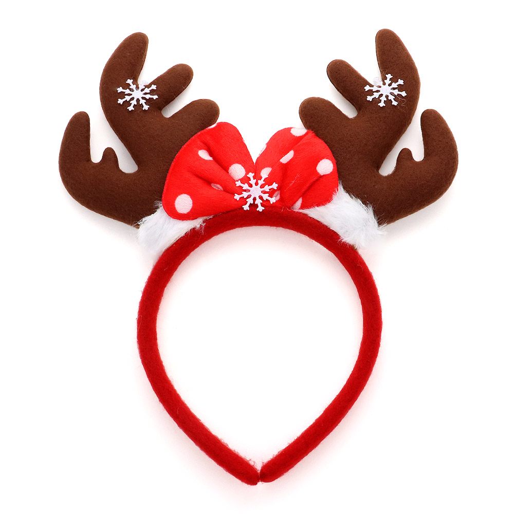 Details • Size : 4.25" H • Festive reindeer antler headband with soft antlers, playful bow, and snowflake details. Perfect for Christmas parties, holiday celebrations, costumes, or photo props. Comfortable and fun to wear, this headband adds seasonal charm and a cheerful touch to holiday outfits for both kids and adults.