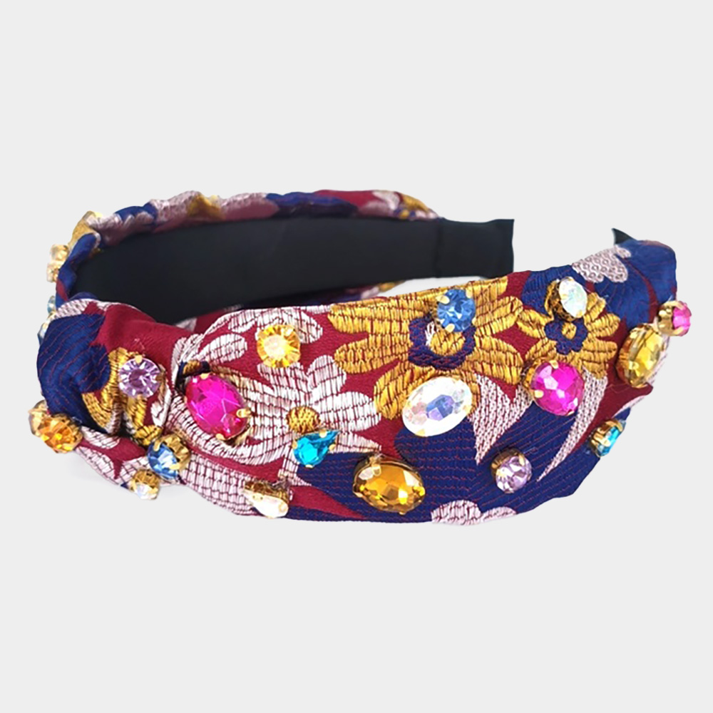 Stone Cluster Embellished Flower Sequin Knot Headband