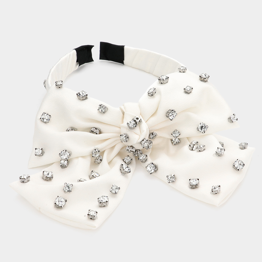 Bling Studded Bow Accented Top Handle Evening Hand Bag / Crossbody Bag
