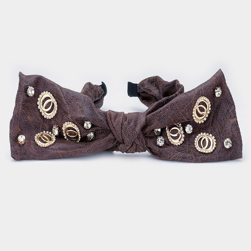 Stone Embellished Open Metal Circle Link Bow Headband