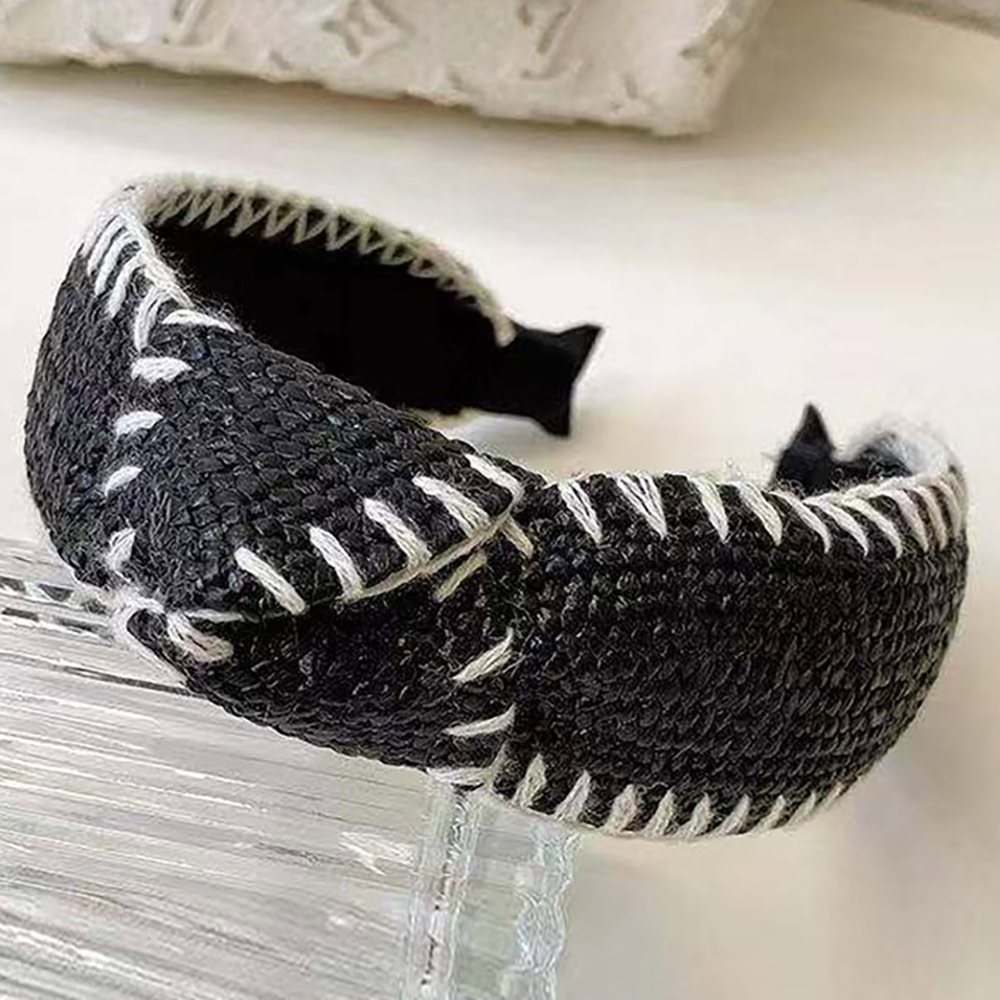 Game Day Seed Beaded Check Patterned Knot Burnout Headband