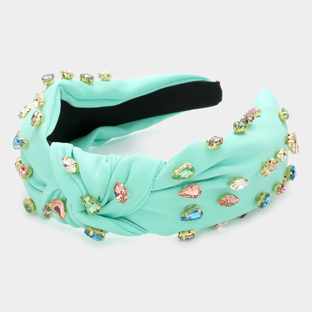 Teardrop Marquise Stone Embellished Knot Burnout Headband