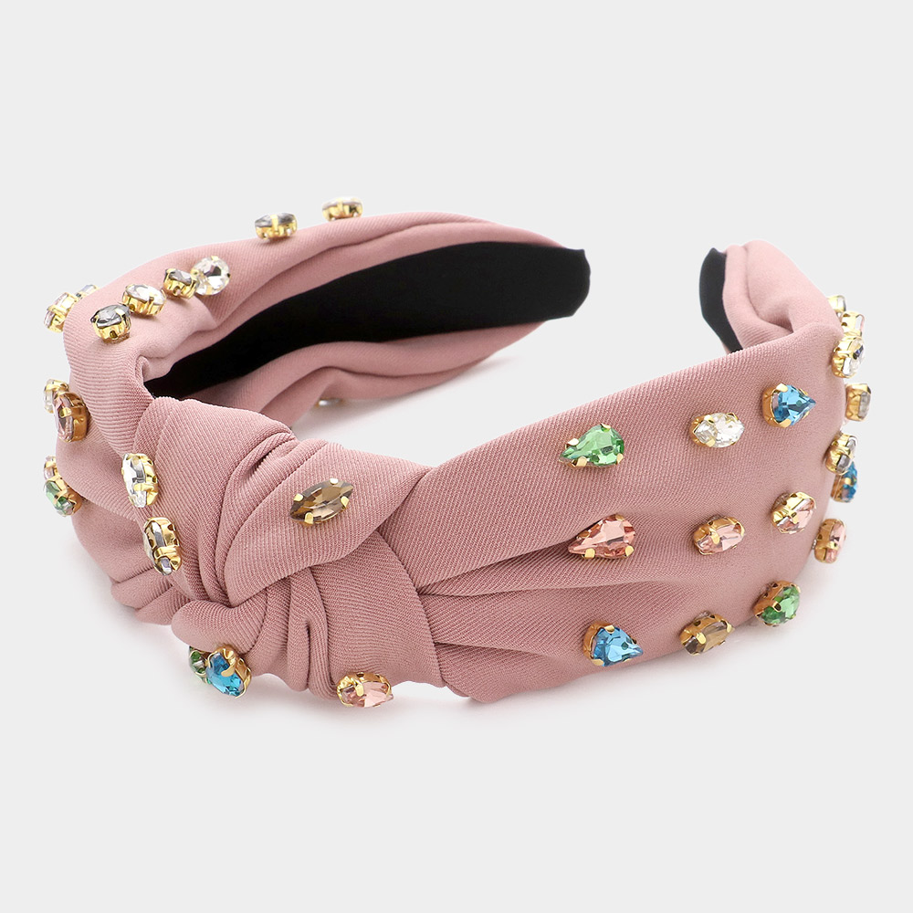 Teardrop Marquise Stone Embellished Knot Burnout Headband