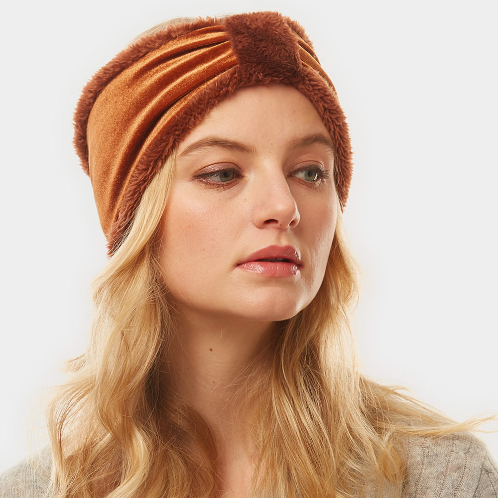 Velvet Knotted Solid Faux Fur Earmuff Headband