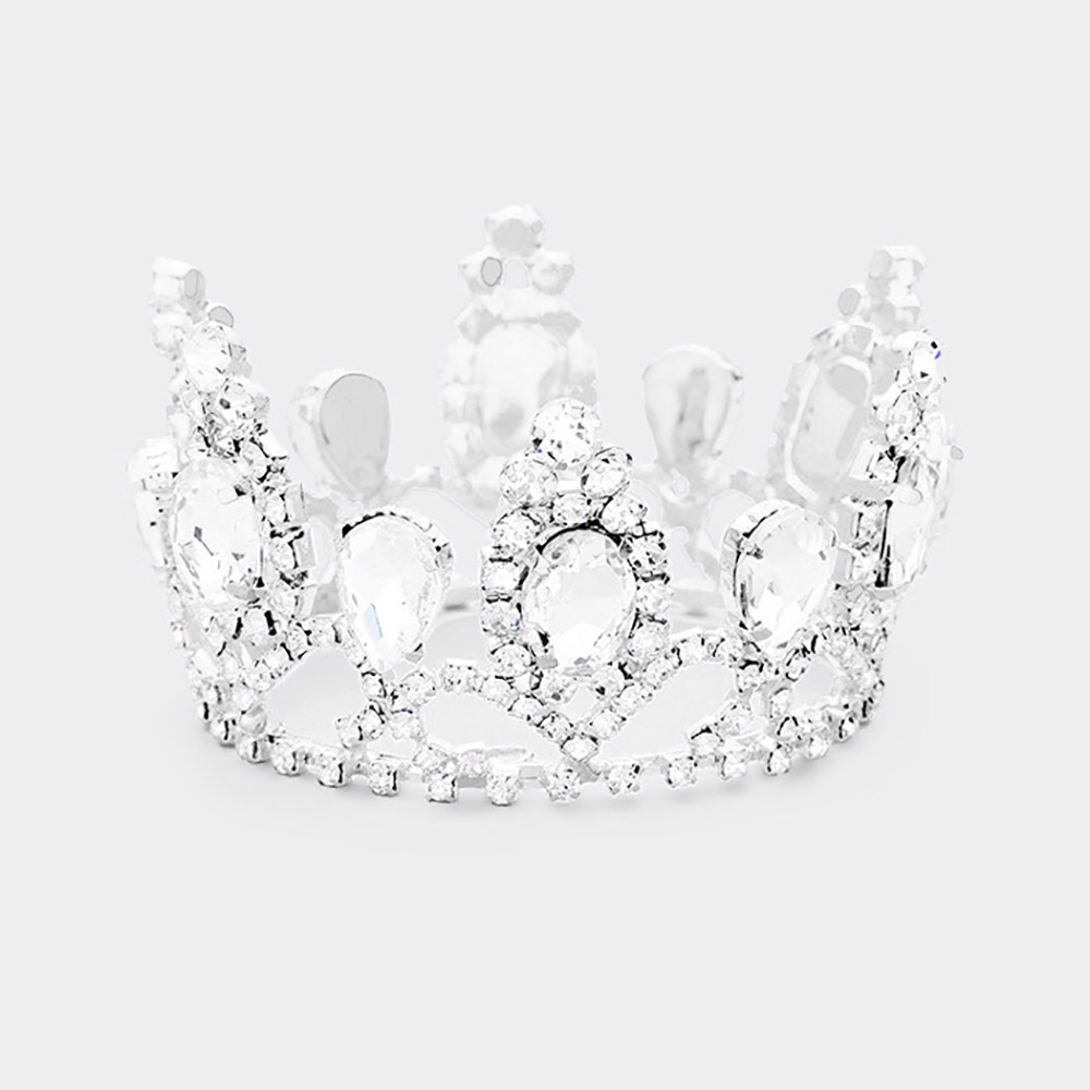 Crystal Oval Accented Rhinestone Pave Mini Crown Tiara