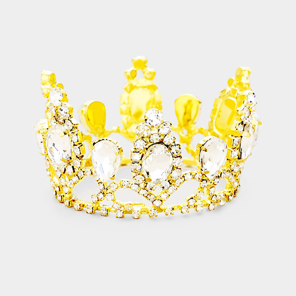 Crystal Oval Accented Rhinestone Pave Mini Crown Tiara