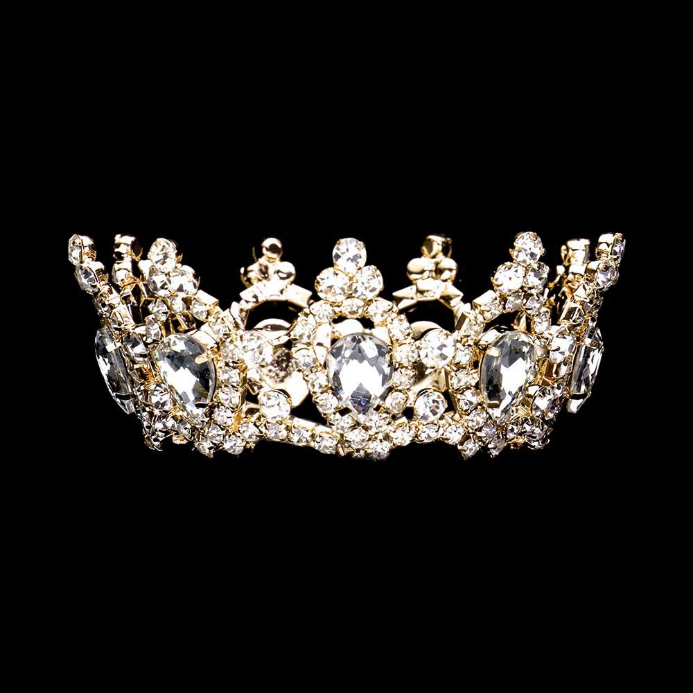 Crystal Teardrop Rhinestone Pave Crown Mini Tiara