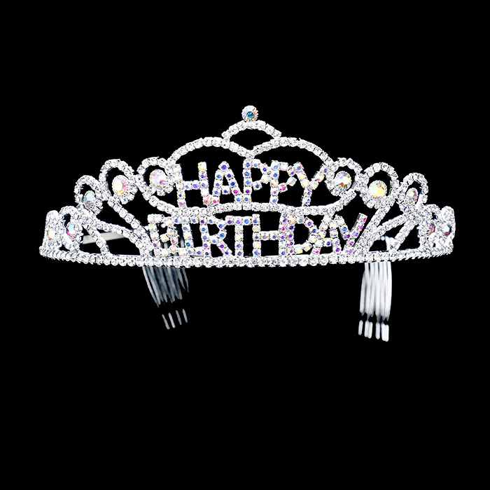 Happy Birthday Crystal Rhinestone Pave Princess Tiara