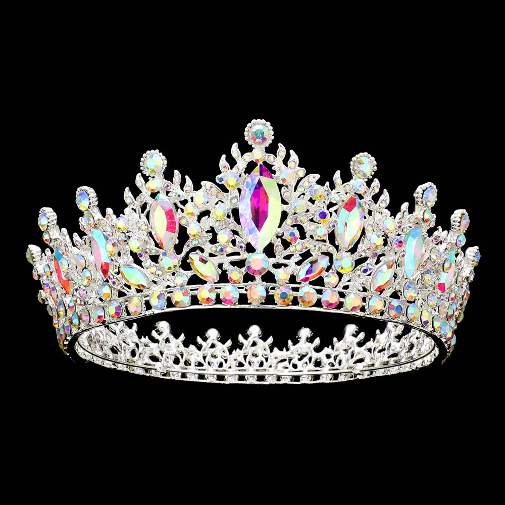 Marquise Stone Accented Leaf Detail Crown Queen Tiara