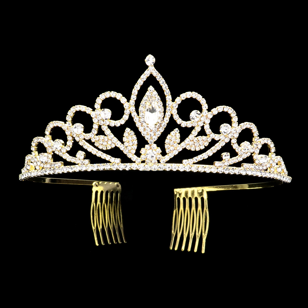 Marquise Stone Accented Rhinestone Paved Princess Tiara