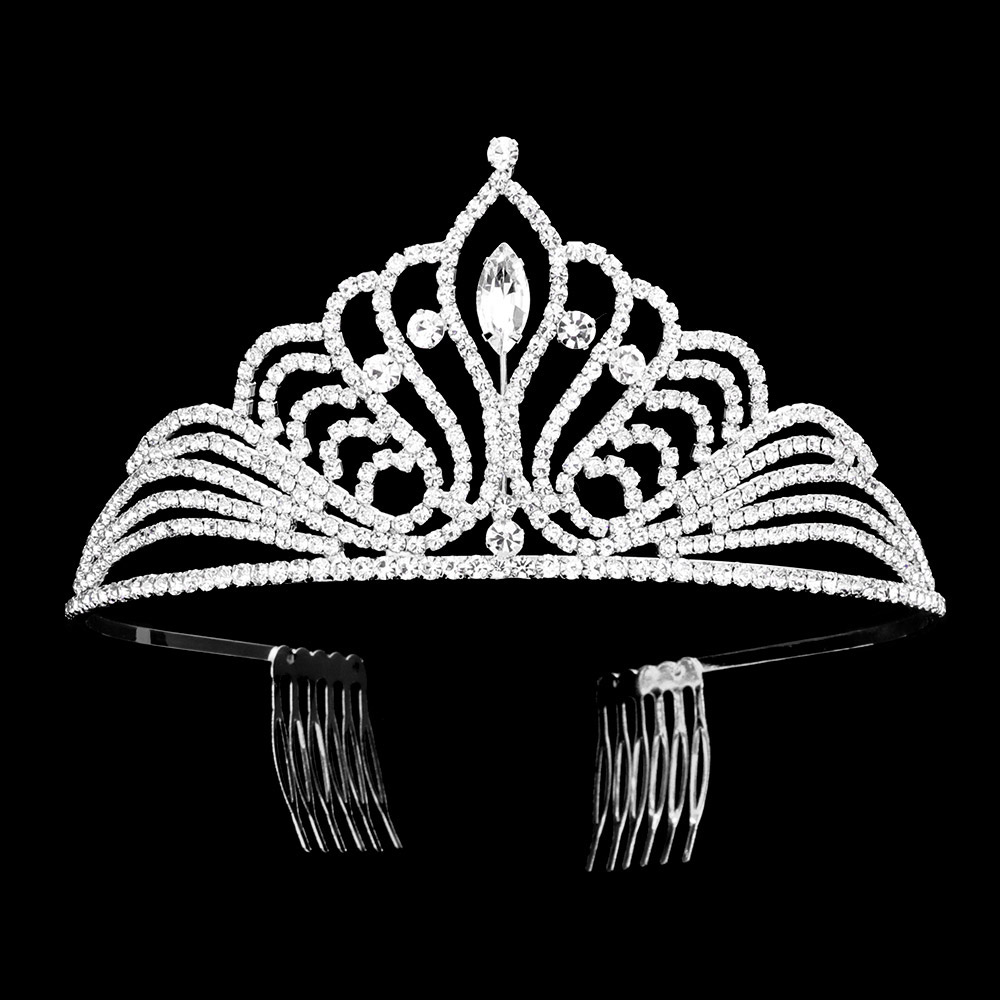 Marquise Stone Accented Rhinestone Paved Princess Tiara
