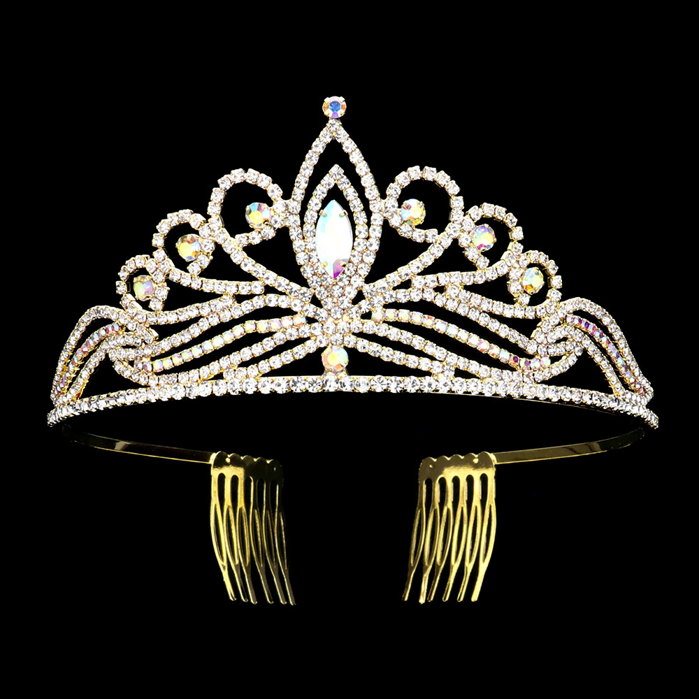 Marquise Stone Accented Rhinestone Paved Princess Tiara