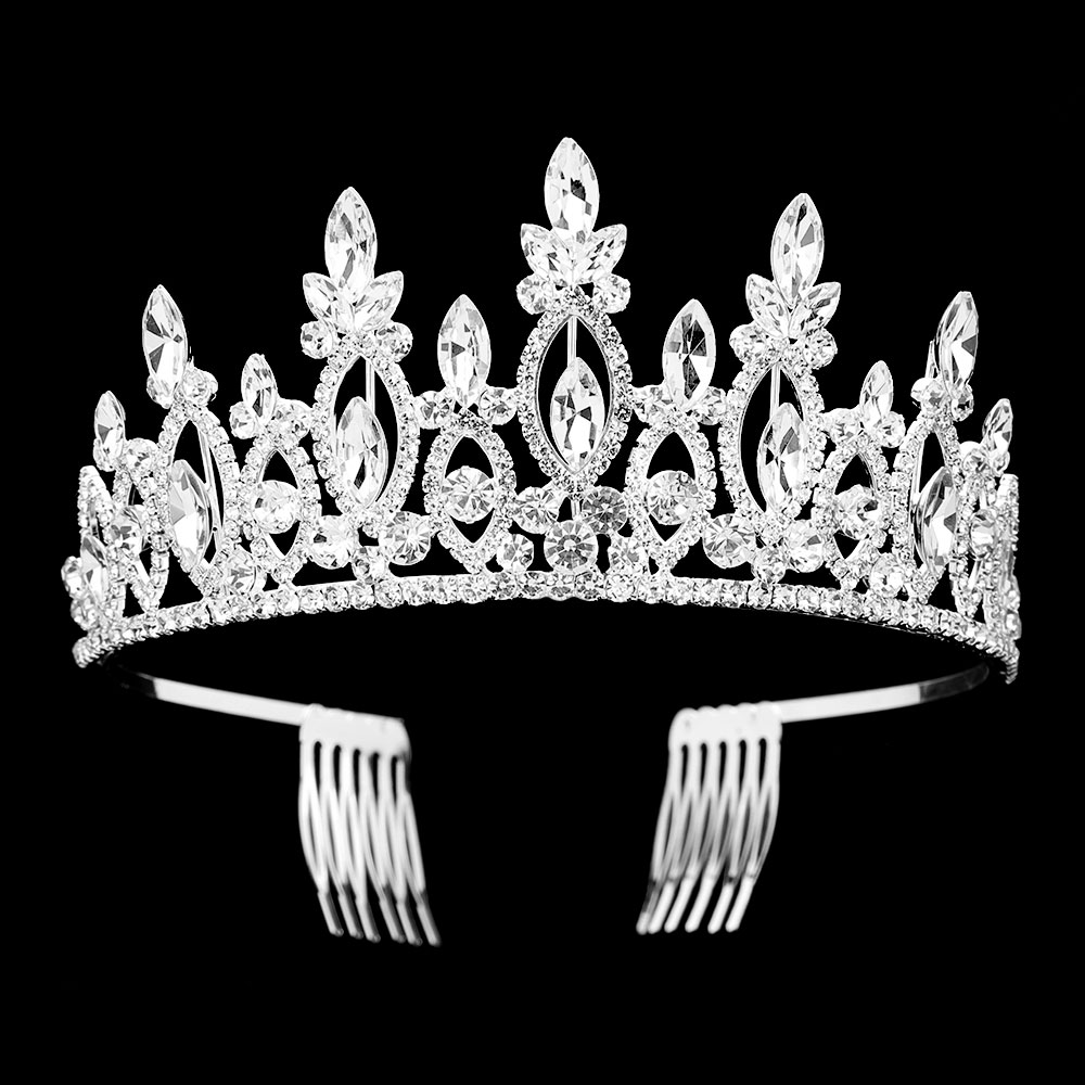 Marquise Stone Cluster Embellished Rhinestone Paved Crown Princess Tiara Marquise Stone Cluster Embellished Rhinestone Paved Crown Princess Tiara