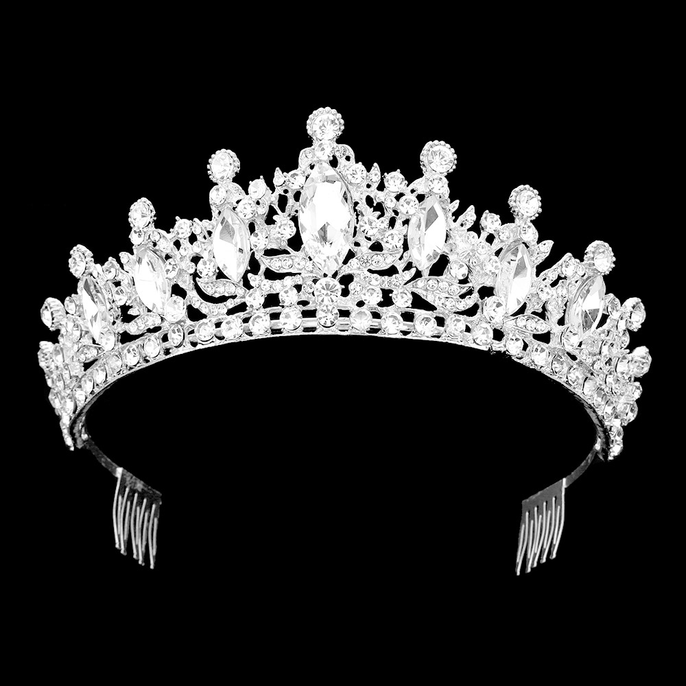 Marquise Stone Pointed Rhinestone Embellished Wedding Princess Tiara